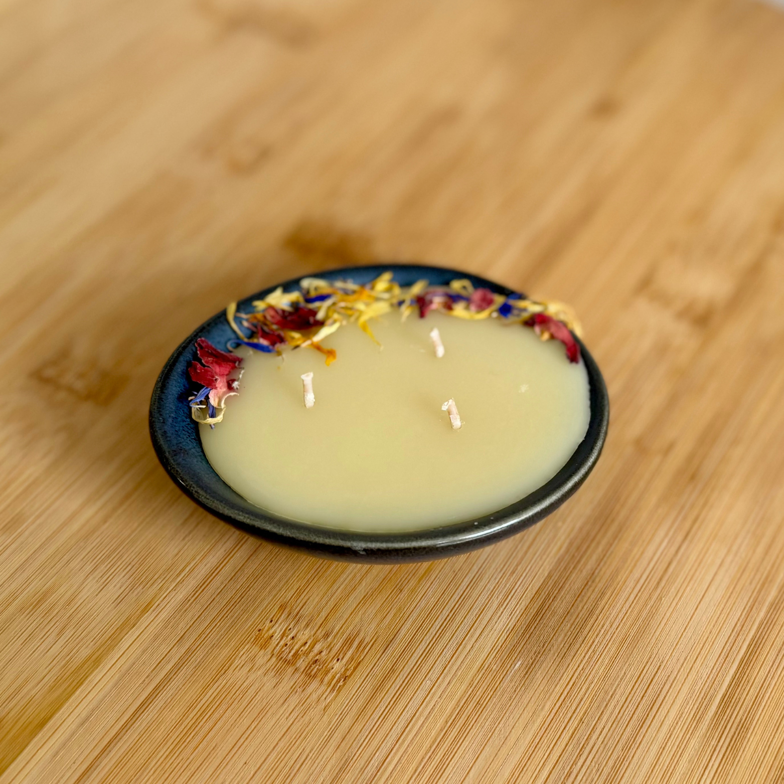 - 'Midnight' 100% natural beeswax candle By Elliots Treasures – scented with soft rosie florals to calm and uplift